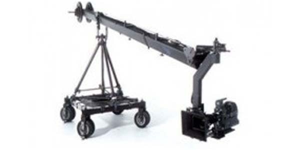 With a dolly track system for stable tracking shots, the Jimmy Jib can be tracked alongside of moving subjects. Any film or video camera weighing up to about 50 pounds can be used.